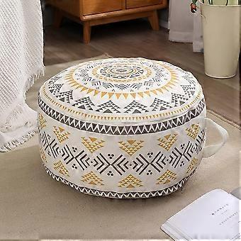 AURA Unstuffed Round Pouf Covers, Boho Geometric Ottoman Cover with Handle Design,for Living Room,Bedroom,Patio (Yellow,45x45x20cm)