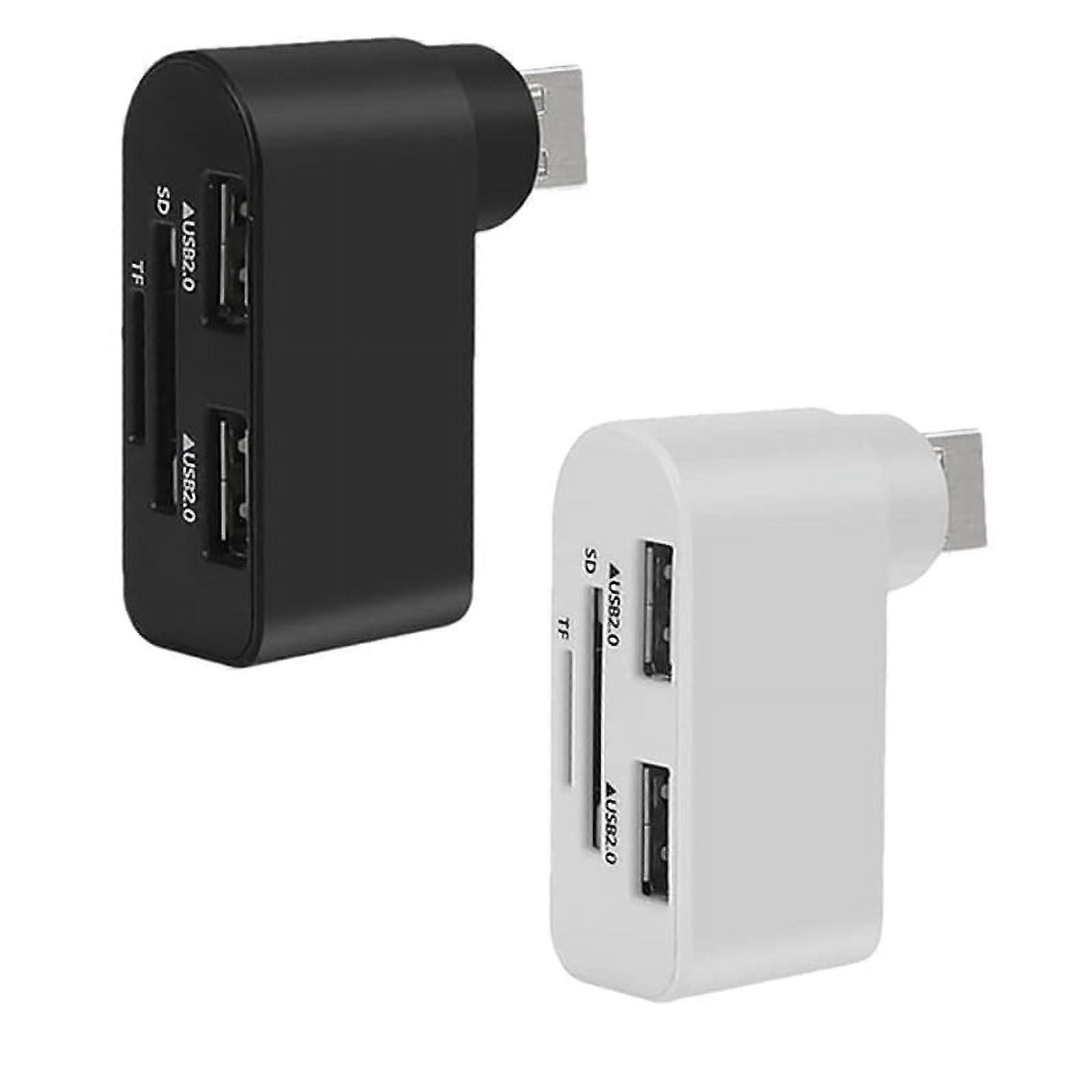 4 in 1 Rotatable USB Hub,Laptop Hub, Portable 180 Degrees Rotate USB Hub, USB Hub Docking Station (Black+White)