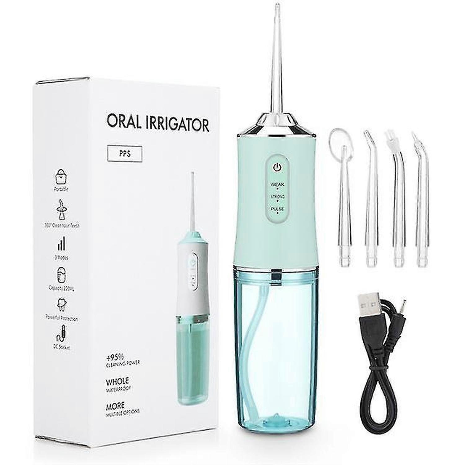 Oral Irrigator Portable Dental Water Flosser USB Rechargeable Water Jet Floss Tooth Pick 4 Jet Tip 220ml 3 Modes IPX7 1400rpm