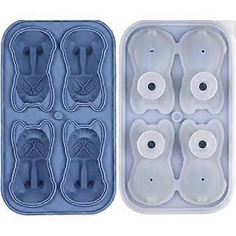 Bac à glaçons avec couvercle - bouledogue Français 3D, moules à glaçons de 2 pouces, 4 formes de trous grands bacs à glaçons en silicone pour whisky, B
