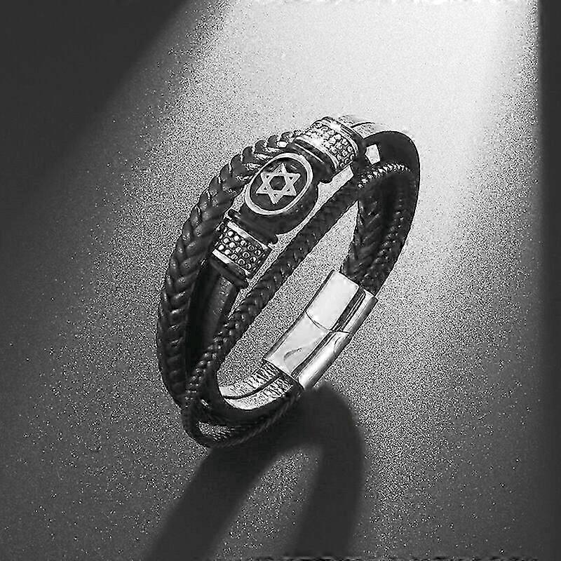 Israeli Classic Handwoven Jewish Star of David Multi-Layered Leather Bracelet for Men Fashion Charm Wrist Jewelry