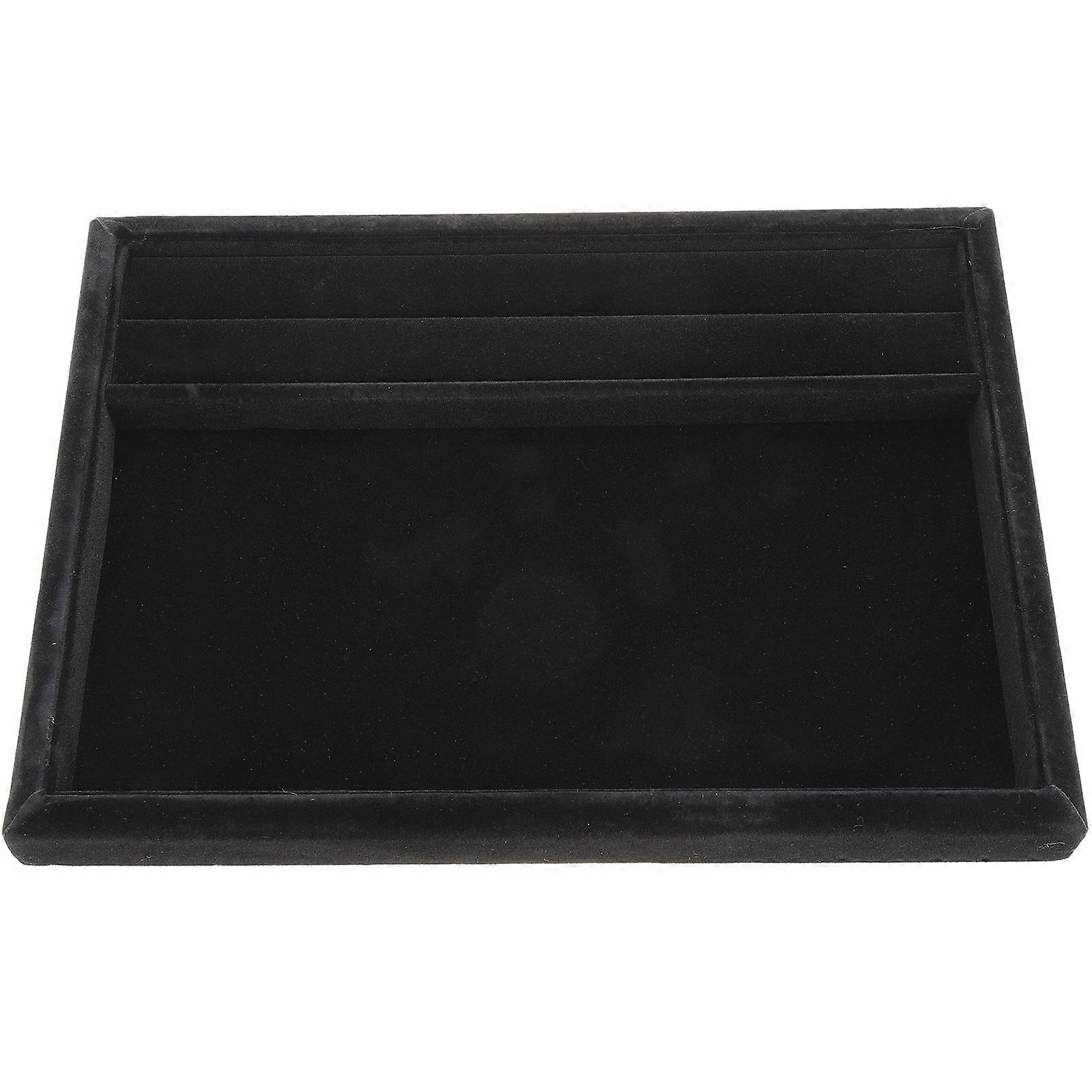 It sounds like you're describing or looking for a **Black Velvet Jewelry Tray** with specific features for organizing and displaying jewelry. Here's