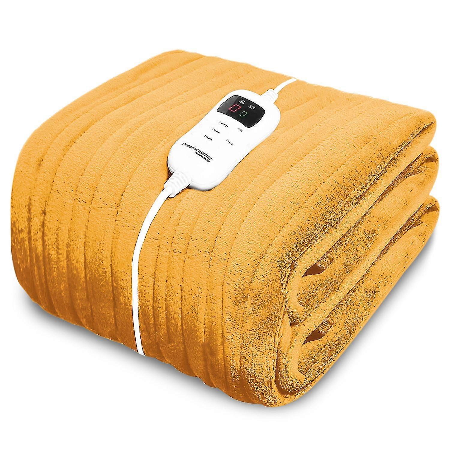 Electric Heated Throw Over Blanket Gold Ochre Yellow Fleece 160cm X 120cm
