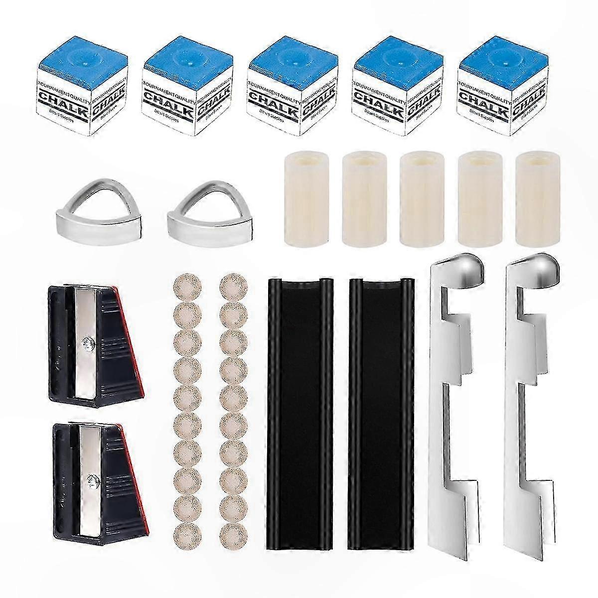 Pool Cue Maintenance Set with Tip Clamps, Replacement Tips, Shapers, Chalk Squares, and Ferrules for Billiards Equipment Care