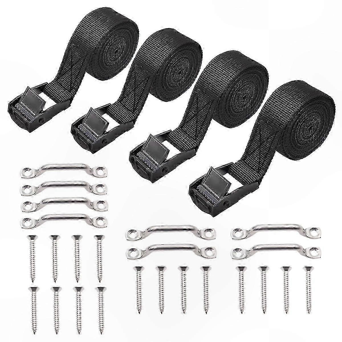 Heavy Duty 1in x 4ft Tie Down Strap Kit with Stainless Steel Buckle, Bracket & Screws for Boats, Cars, Luggage Fastening Needs