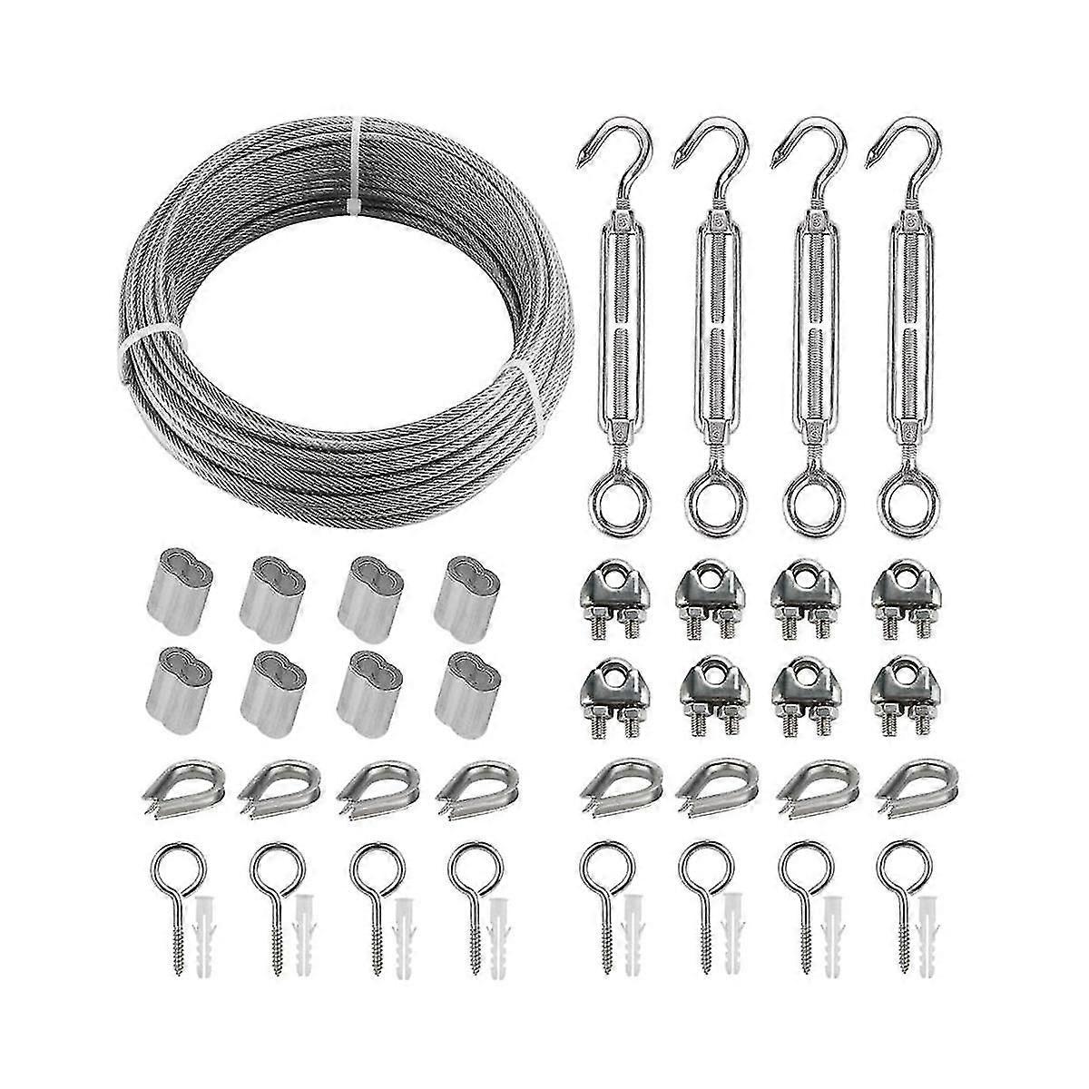 20m Stainless Steel Kit, 3mm Sorting Helps Tighten Rope Wear With M5 Stainless Steel Rope Clamp R