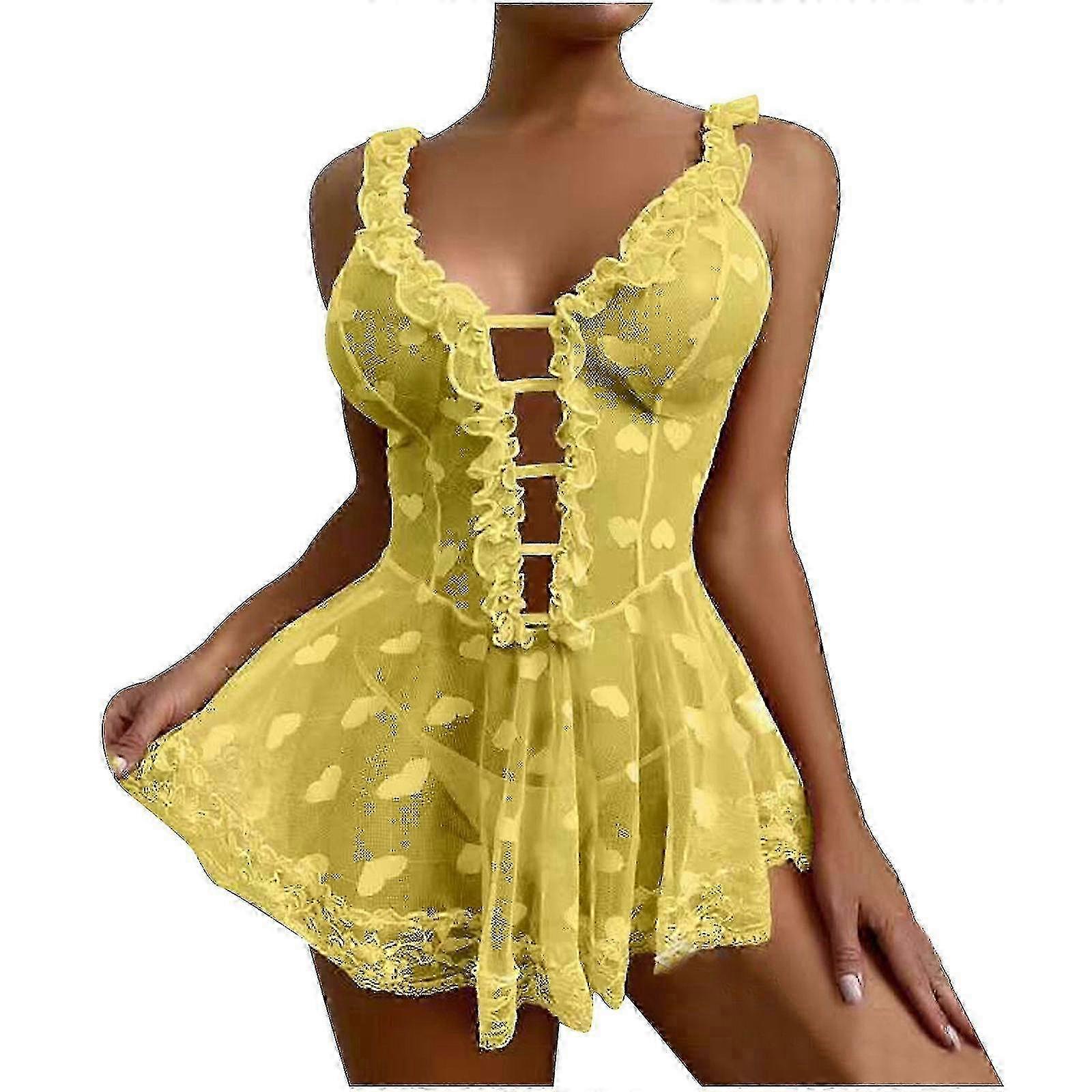 Women's Fashion Sexy Soild heart Print Lace splicing Mesh Nightdress Product information: 1.Put your body in a totally relaxed status, high elasticity belt. 2.Ultra smooth feeling, every diligent design consideration. 3.Focuses on a perfect underwear for you, not only inimitably sexy. 4.Make you super sexy and seductive. 5.Serve as a nightwear and also a stimulative sex kit for sexual life of couples. Product information: Season:Summer,Spring Gender:Women Occasion:Sexy Material:Polyester Style:Casual,Sexy Sleeve length:Sleeveless How to wash:Hand wash Cold What you get:1 Set Women Nightdress Size Size. US UK EU Bust Waist S Small 4 8 34 76cm/29.92' 64-68cm/26.77' M Medium 6 10 36 78cm/30.71' 66-70cm/27.56' L Large 8 12 38 80cm/31.50' 68-72cm/28.35' XL X-Large 10 14 40 82cm/32.28' 70-74cm/29.13' XXL XX-Large 12 16 42 84cm/33.07' 72-76cm/29.92' XXXL 3X-Large 14 18 44 86cm/33.86' 74-78cm/30.71' Size:S Size.:Small US:4 UK:8 EU:34 Bust:76cm/29.92' Waist:64-68cm/26.77' Size:M Size.:Medium US:6 UK:10 EU:36 Bust:78cm/30.71' Waist:66-70cm/27.56' Size:L Size.:Large US:8 UK:12 EU:38 Bust:80cm/31.50' Waist:68-72cm/28.35' Size:XL Size.:X-Large US:10 UK:14 EU:40 Bust:82cm/32.28' Waist:70-74cm/29.13' Size:XXL Size.:XX-Large US:12 UK:16 EU:42 Bust:84cm/33.07' Waist:72-76cm/29.92' Size:XXXL Size.:3X-Large US:14 UK:18 EU:44 Bust:86cm/33.86' Waist:74-78cm/30.71 Note: Due to the light and screen setting difference, the item's color may be slightly different from the pictures. Please allow slight dimension difference due to different manual measurement. Sold by-YJL official store