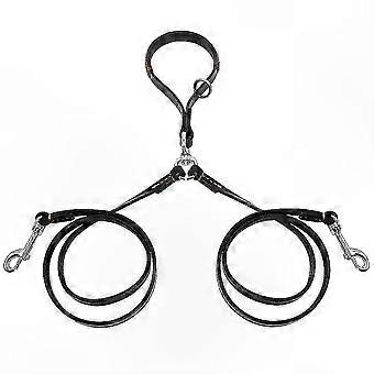 Laisse en cuir à double poignée pour promener deux chiens simultanément