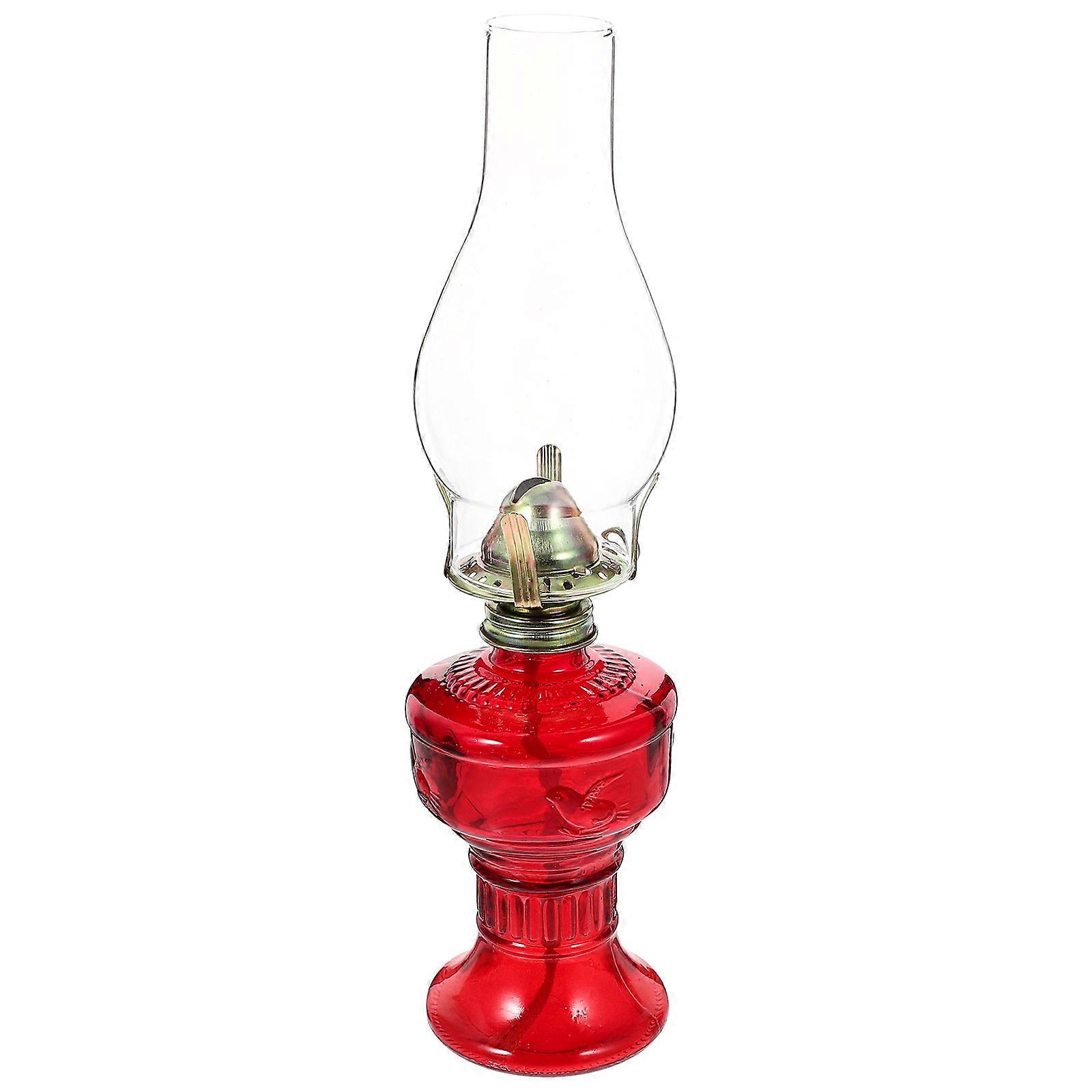 Red Glass Kerosene Lamp Decorative Oil Lamp for Home Use