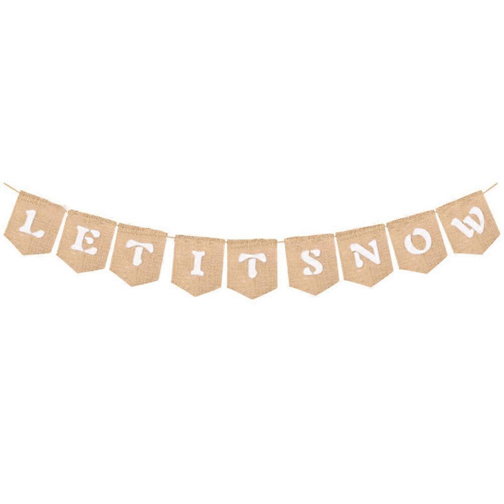 Let It Snow Letters Bunting Banner Decoration Snowflakes Pattern Linen Burlap Banner Flag Party Supplies - C