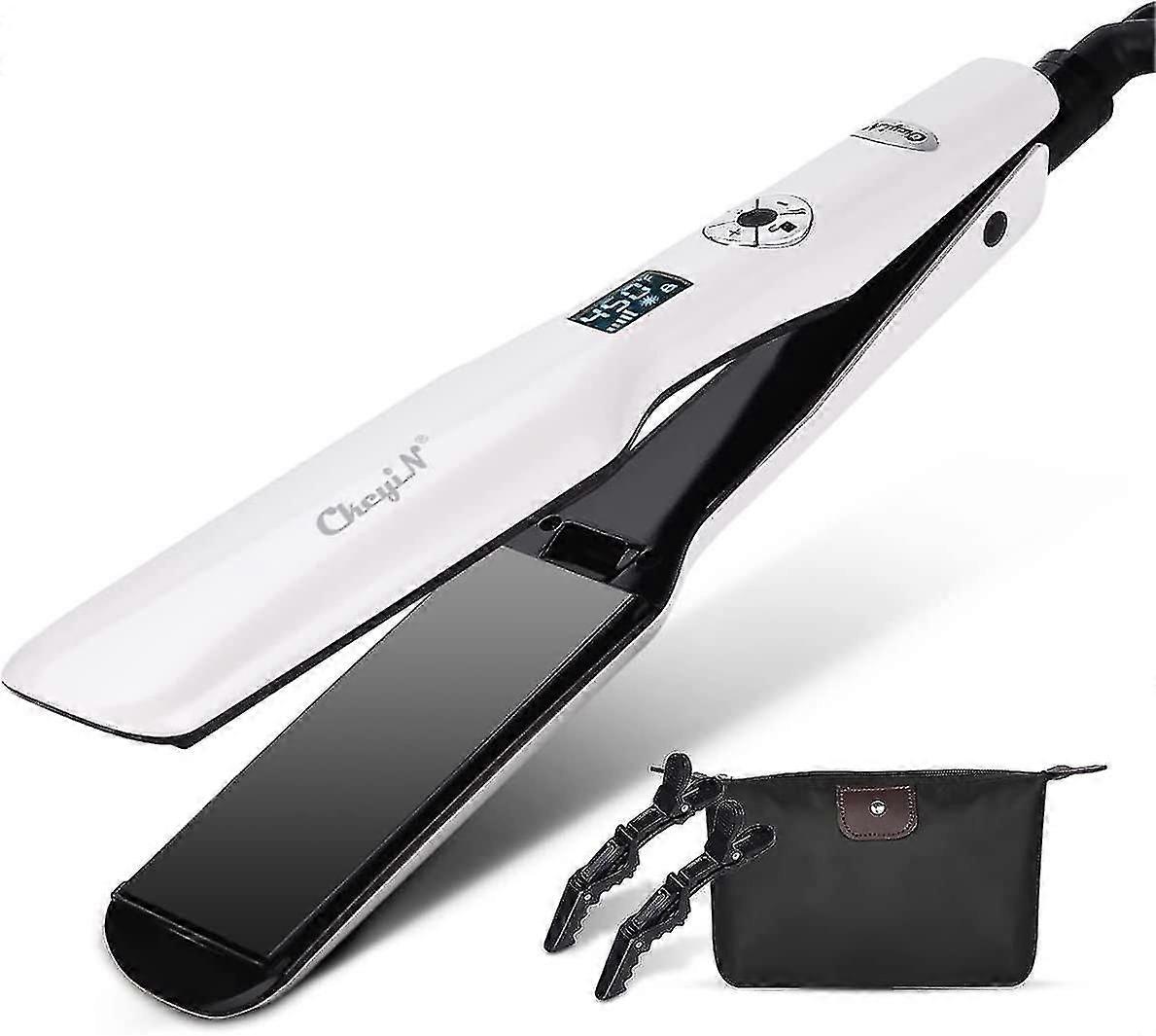Titanium Hair Straighteners Wide Plates, Cheyin Professional 1.8 Inch Flat Iron With Lcd Display 12 Speed Temperature Control, Dual Voltage Ptc Fast H