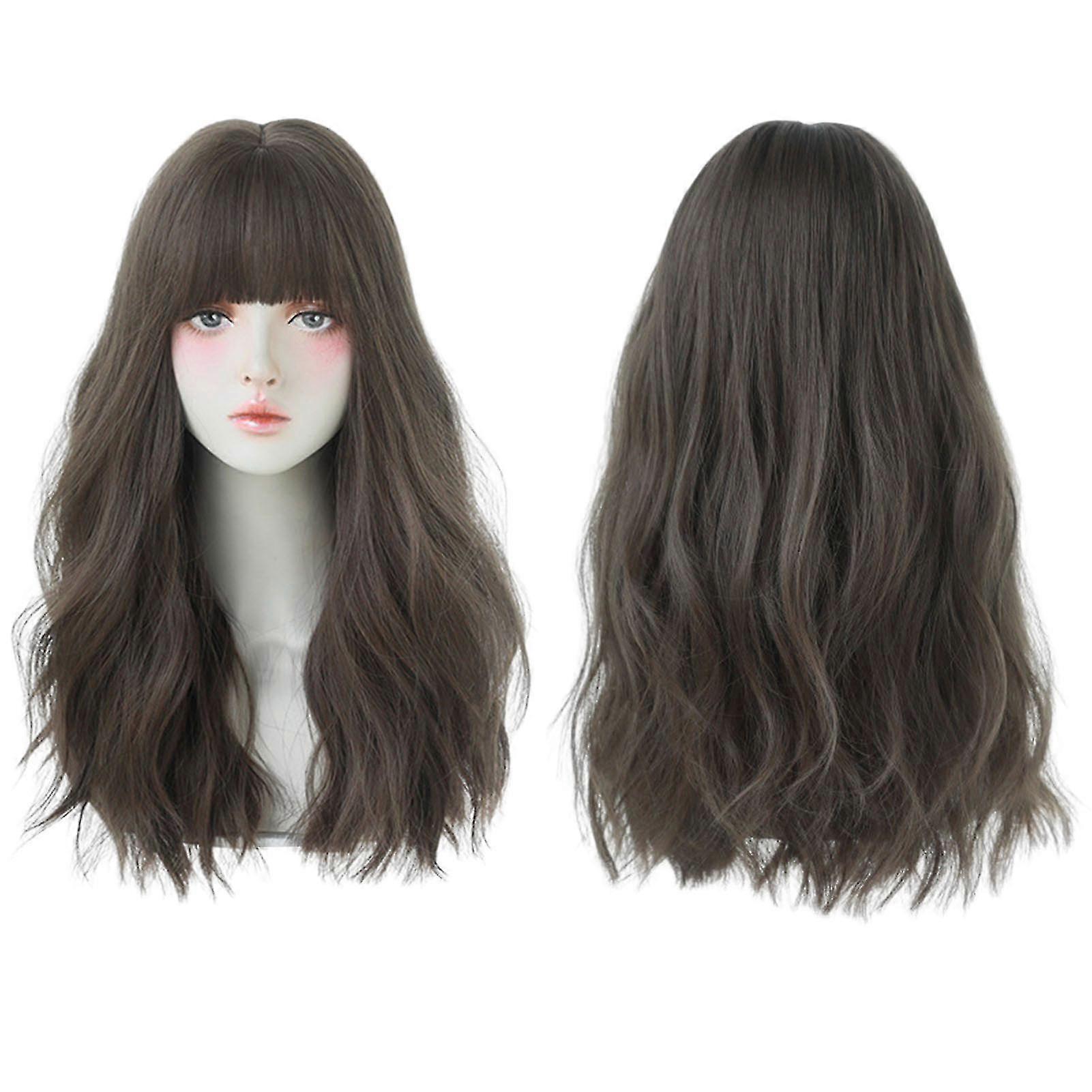 Long Curly Brown Wig With Fringe Reusable Heat Resistant Synthetic Wigs