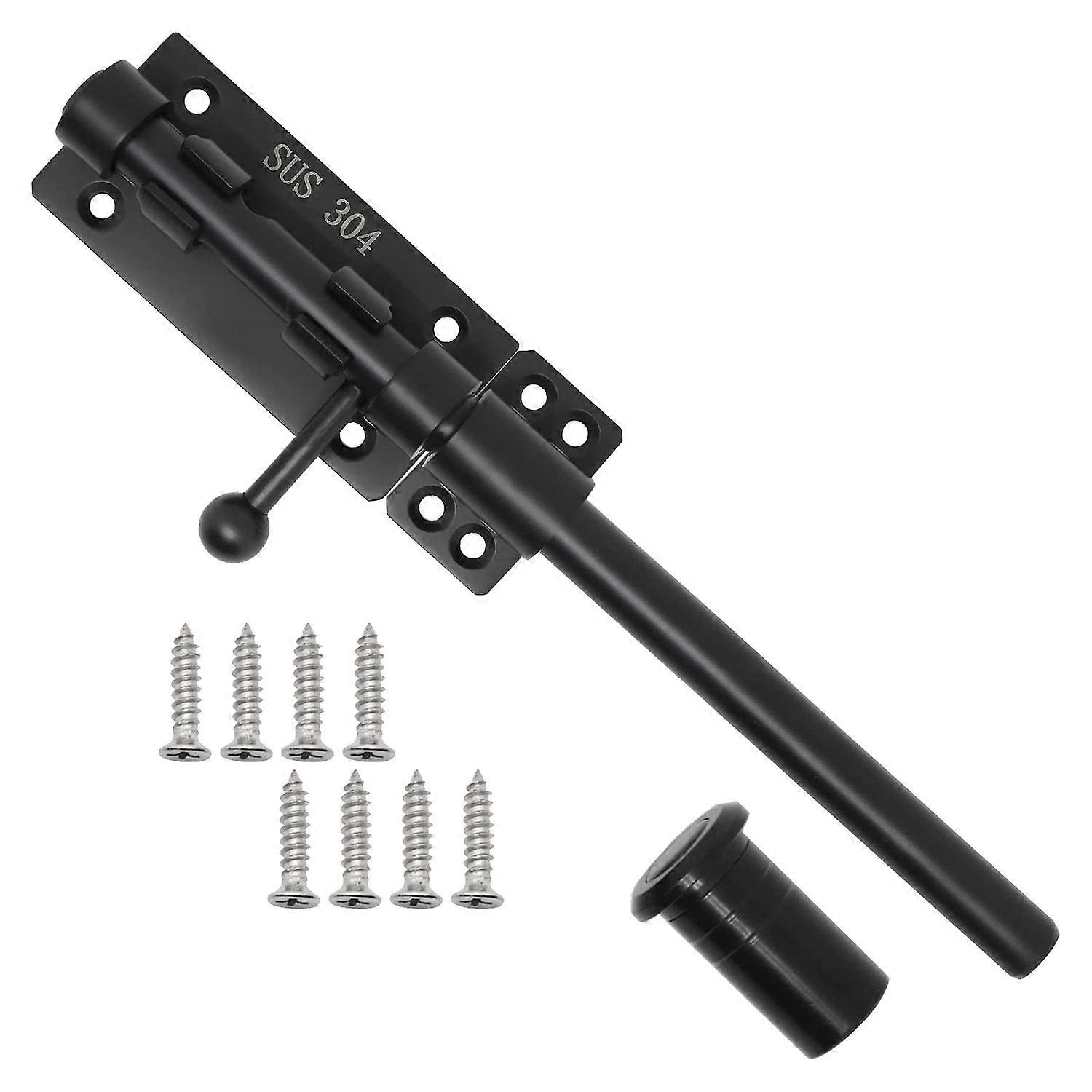 Heavy Duty Slide Bolt Gate Latch with A Padlock, Horizontal Bolt Latch Floor Latch Hardware and Lockable (Black,10 Inch)