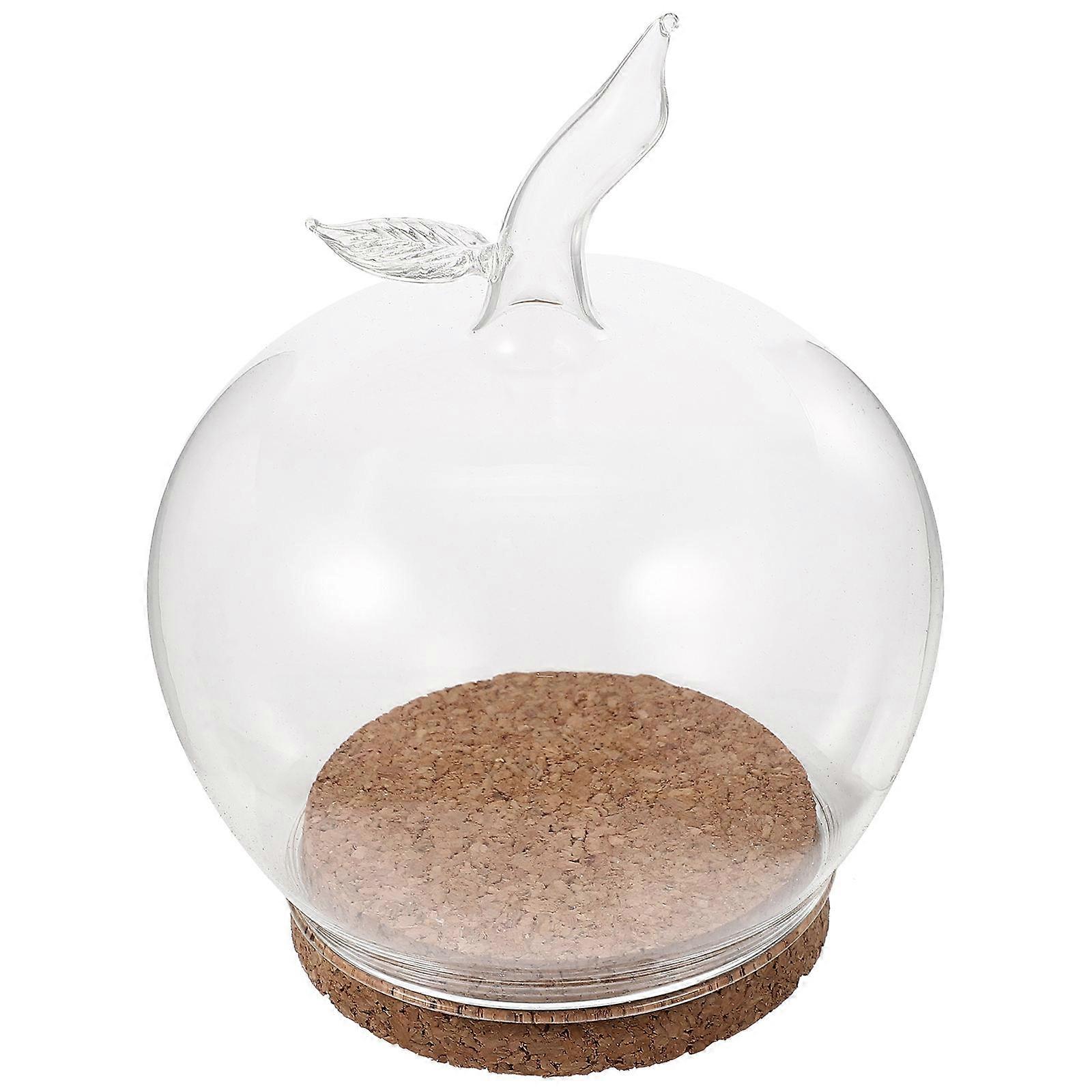 Transparent Glass Display Cover for Decoration 2Pcs Apple Shape with Wood Base