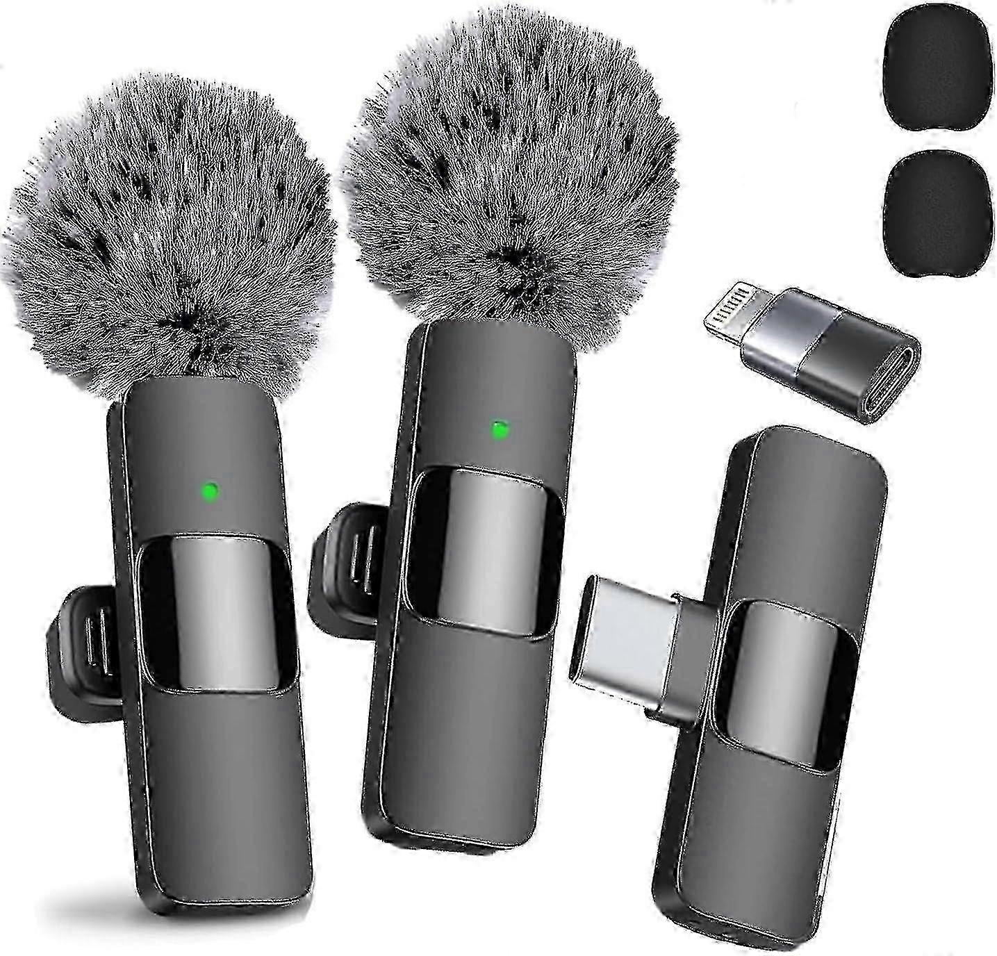 Wireless Lavalier Microphone 2-Pack with Noise Canceling - USB-C Compatible for iPhone 15, iPad & Android Devices