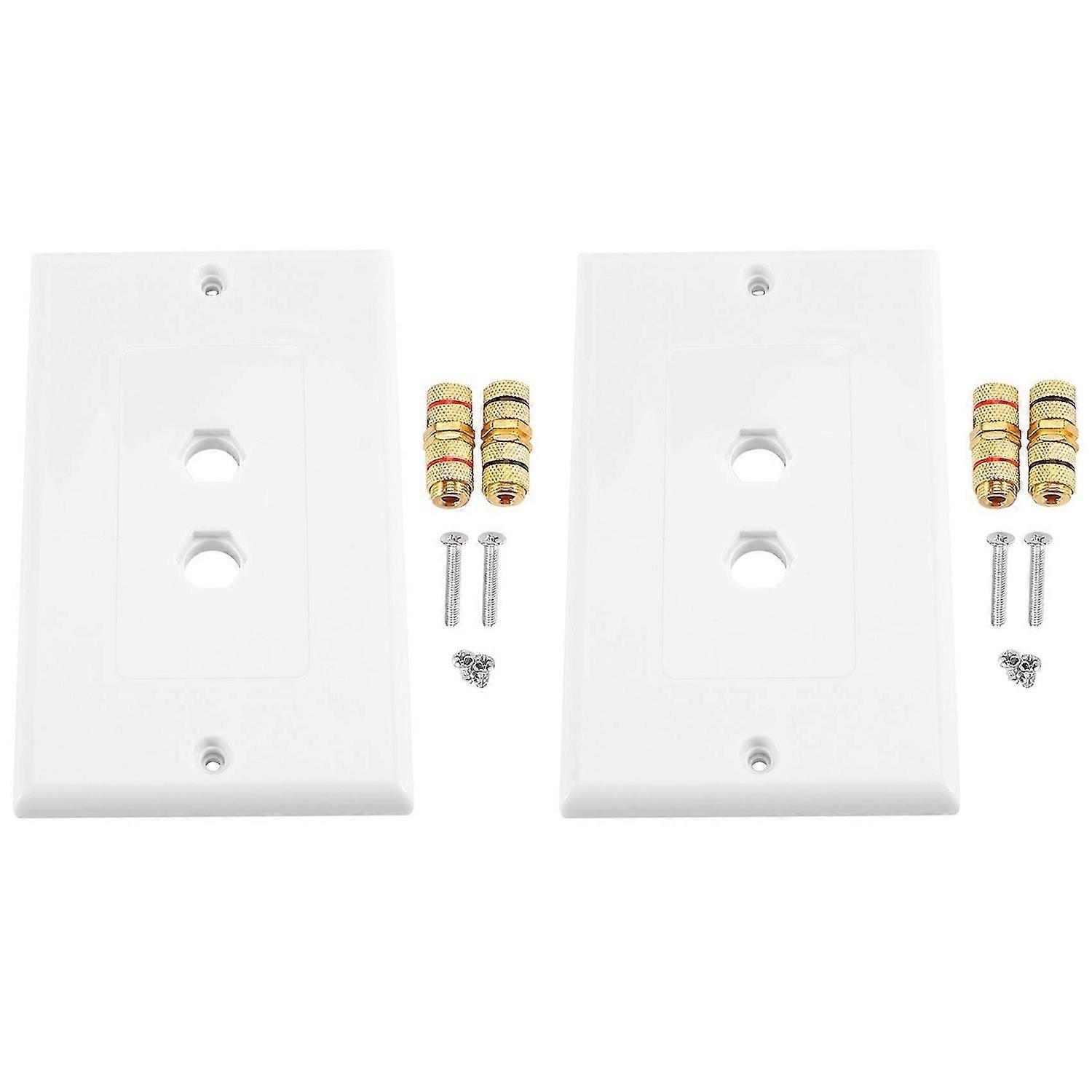 2 Pack Single Gang 1.0 Speaker Wire Wall Plate (Banana Plug Wall Plate) for 1.0 Speaker, White