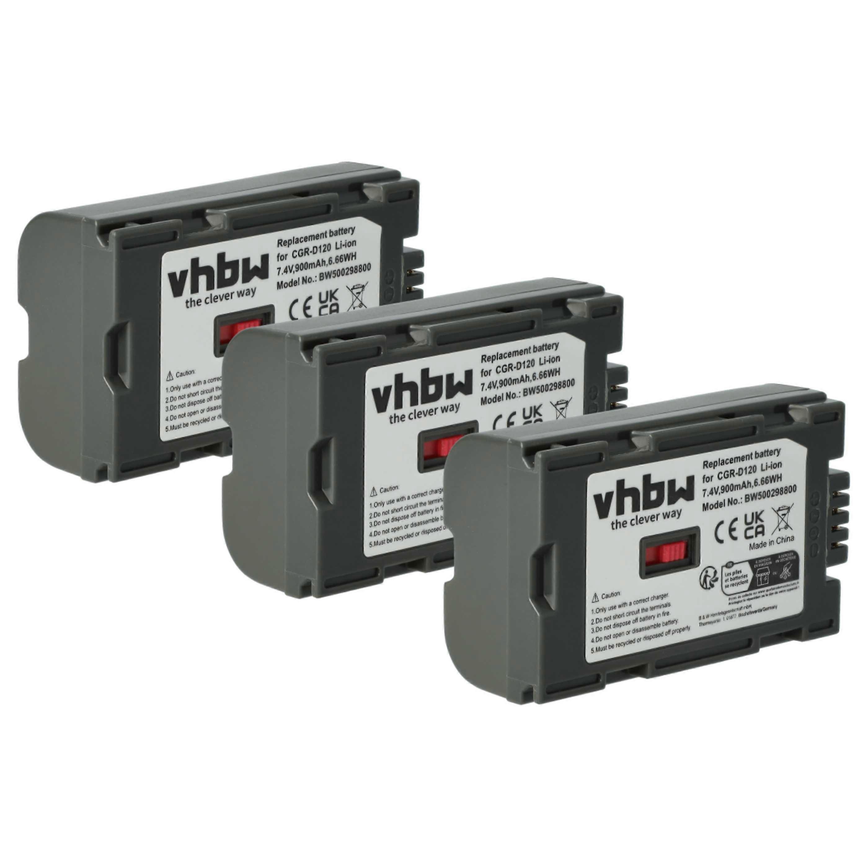 vhbw 3x Akku Ersatz für Panasonic CGR-D28A, CGR-D320, CGR-D28A/1B, CGR-D53A, CGR-D53, CGR-D54s für Videokamera Camcorder (900 mAh, 7,2 V, Li-Ion)