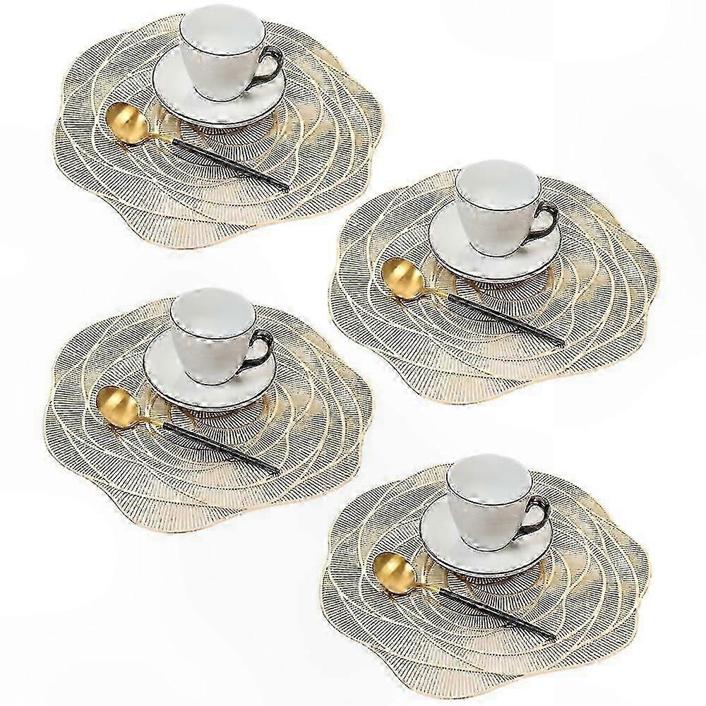 Set of 4 Non-Slip Round Placemats, Washable Vinyl Table Mats in Rose Gold Finish