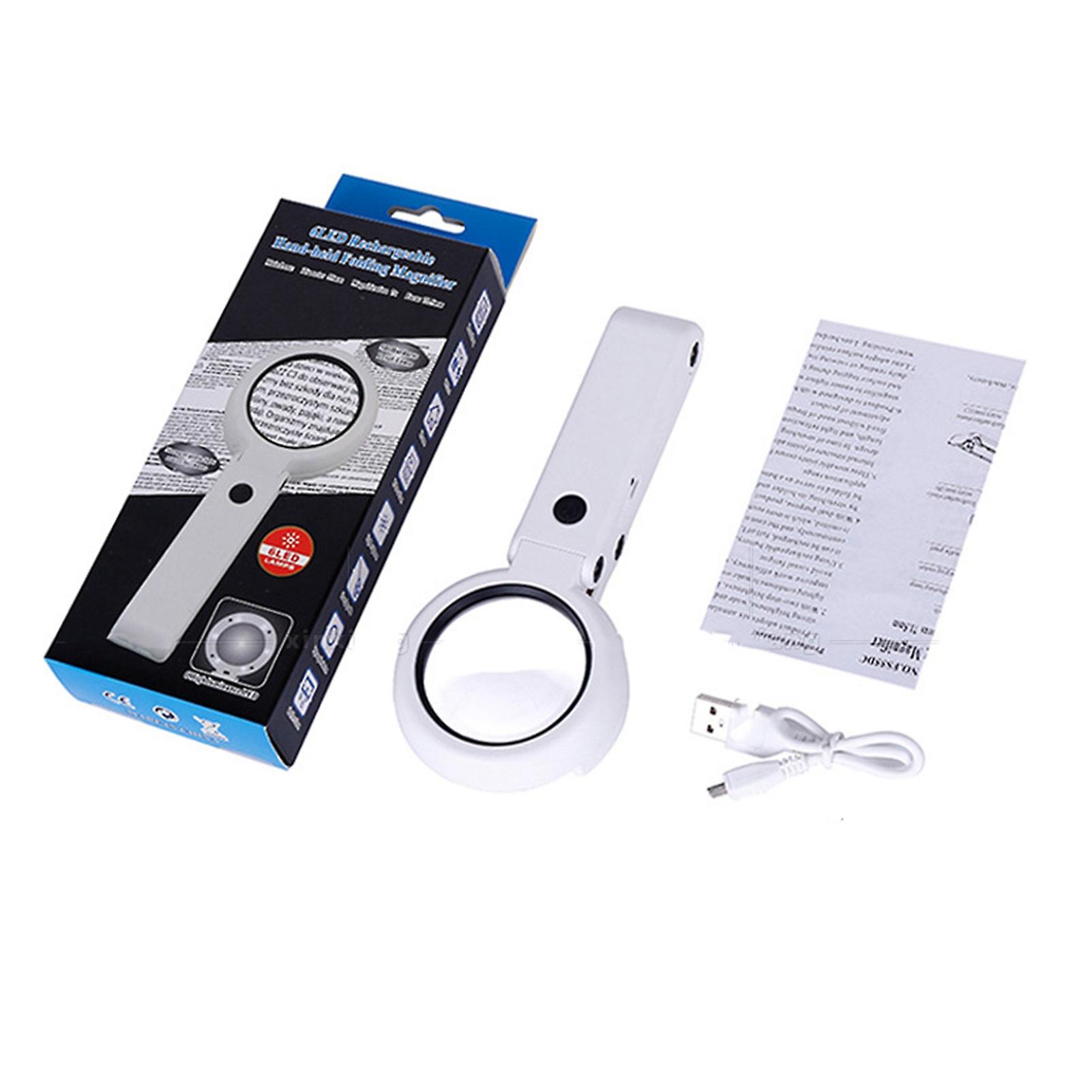 Handheld Magnifying Glass: 7x Magnification with Desktop Stand and 6 LED Lights for Reading