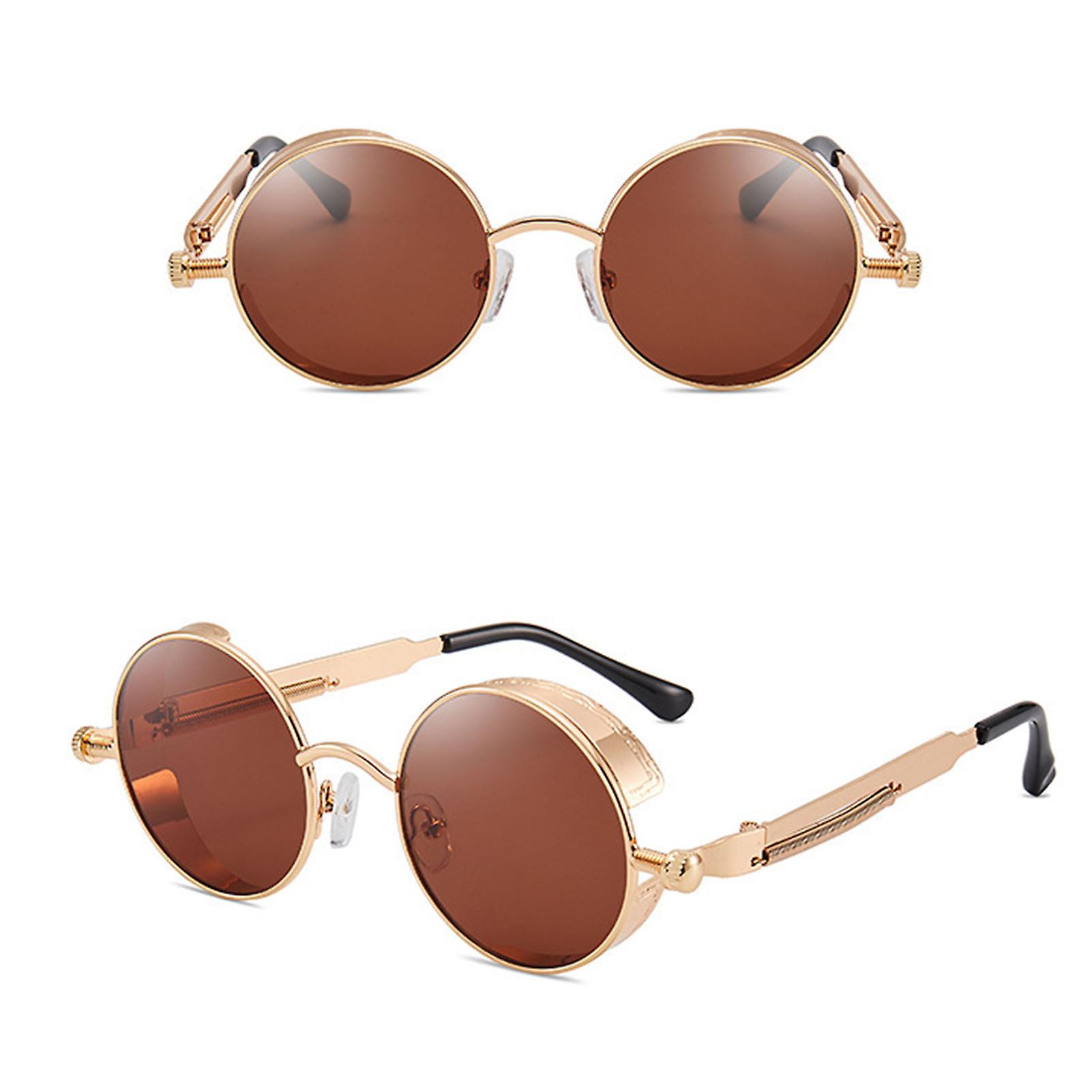 Steampunk Sunglasses with Side Shield Old-School Fashion Round Goggles
