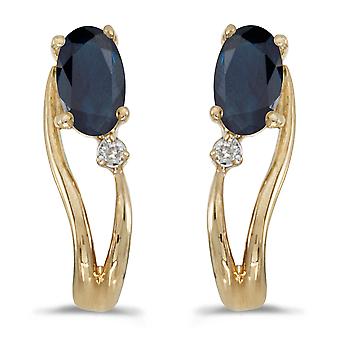 LXR 14k or jaune saphir ovale et diamants boucles d’oreilles wave 0.5 c