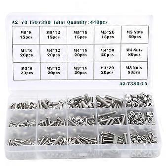 M3 M4 M5 Écrou à vis hexagonale Écrou Ensemble 440PCS Fixations en acier inoxydable Quincaillerie