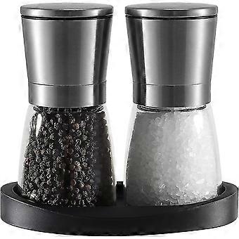 Moulin à sel et à poivre Moulin à sel, noyau de grossièreté en céramique réglable en acier inoxydable moulin à sel poivre moulin salière de table avec support en caoutchouc pour