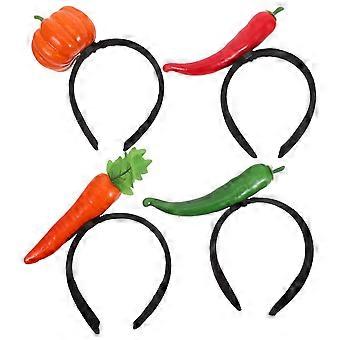 Lot de 4 bandeaux amusants pour Halloween : citrouille, piment rouge et vert, carotte. Accessoire de coiffure 3D en plastique pour femmes, déguisement, cosplay et fêtes de Noël.