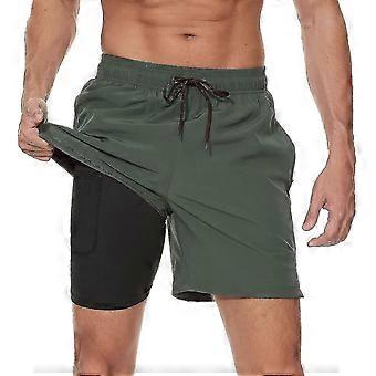 Maillot de bain 2 en 1 pour homme avec doublure de compression, séchage rapide, avec boxer doublé, short de plage extensible avec poches zippées.