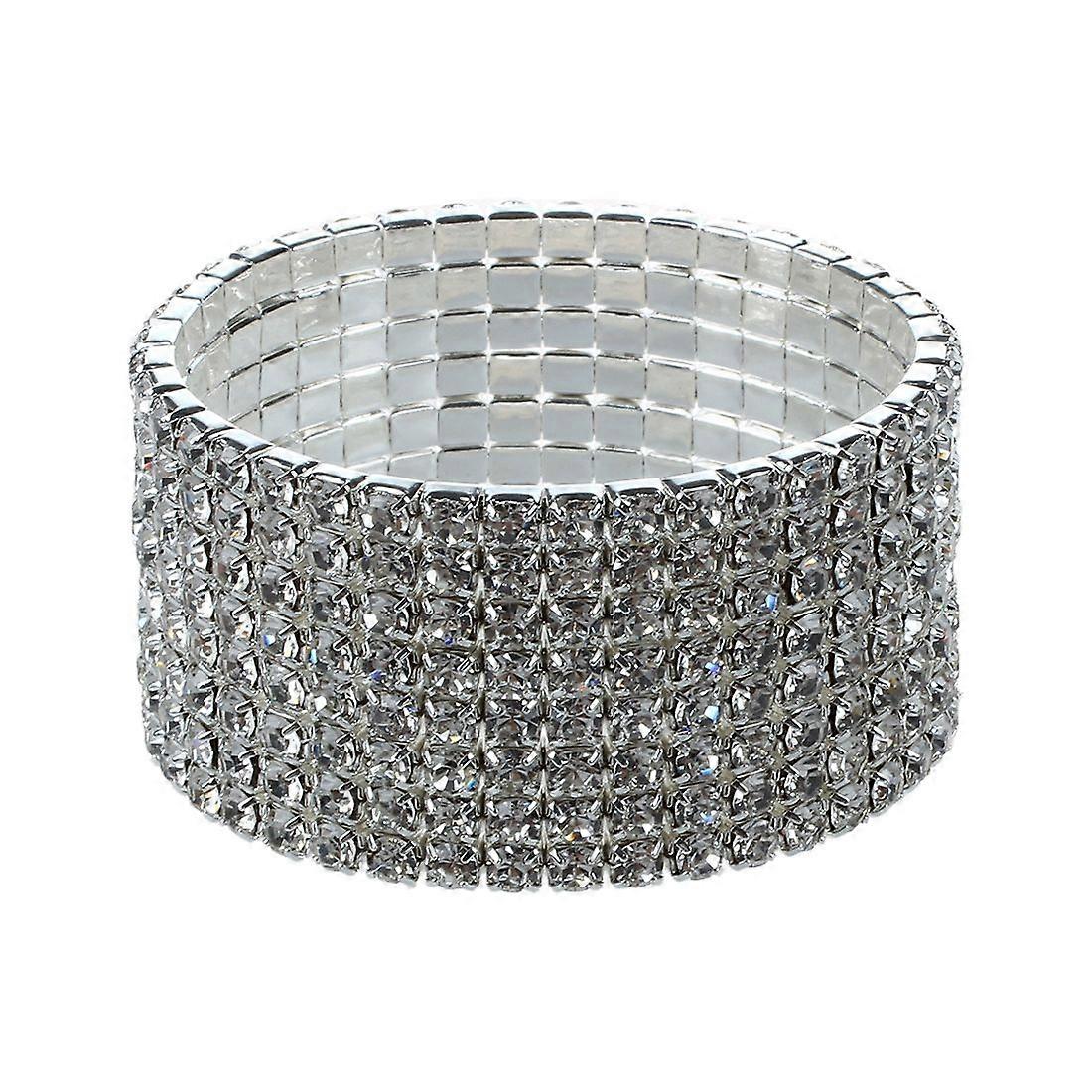 Wedding Bridal Stretchy 8 row Rhinestone Bracelet Bangle 28 mm