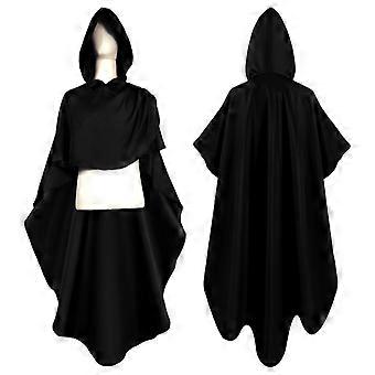 Hommes Couleur Solide Long Hooded Knight Cape Cloak Medieval European Game Anime Clothes Stage Show Halloween Party Clothingblack