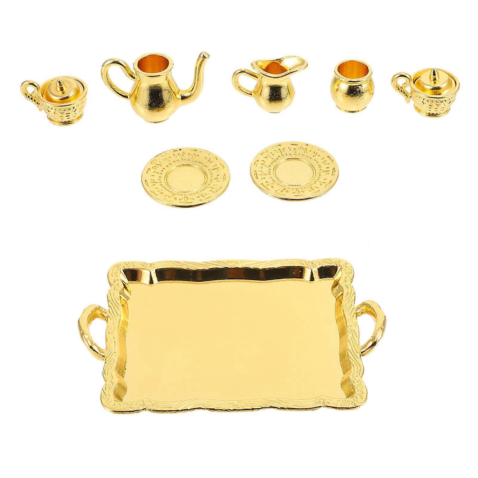 Gold Mini Tea Kettle Decoration For Miniature Scene 2.8X2X0.2in Water Resistant 1 Set