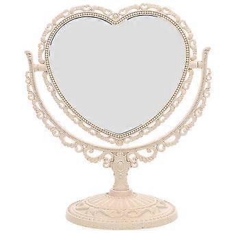 Miroir de courtoisie de table Miroir de maquillage grossissant double face avec rotation à 360 degrés (en forme de cœur, beige)