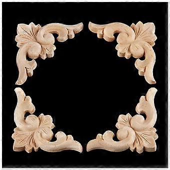 8Pcs 15 x 15cm Bois d’hévéa sculpté Coin Onlay Applique Exquis Non peint