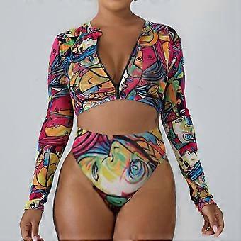 Femme Nouvelle Mode Chemise à manches longues Mesh Sunscreen Sexy Bikini Maillot de bain