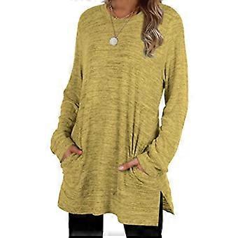 Femmes à manches longues Loose Tops Automne Hiver Élégant Casual Poches Mid Length Femmes Col Rond T-shirts