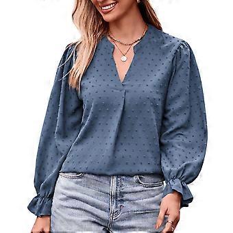 Femmes V col T Shirt Épaule Plissé Manches Longues Couleur Pure Couleur Ample Jacquard Blouse