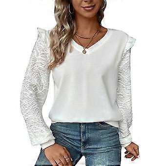 Femmes Manches Longues Haut Volants Garniture Couture Col V Pull Automne Casual Mince Haut Pour À La Maison Travail Loisirs