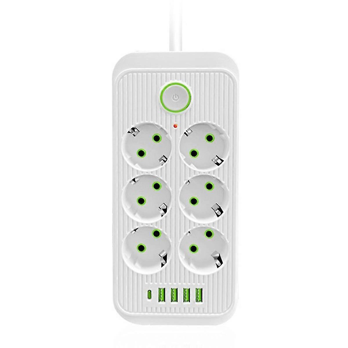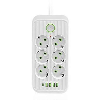 EU Power Strip Multiprise 6AC Outlets Electrical Socket with 4 USB 1 Type-C Network Filter Fast Cha
