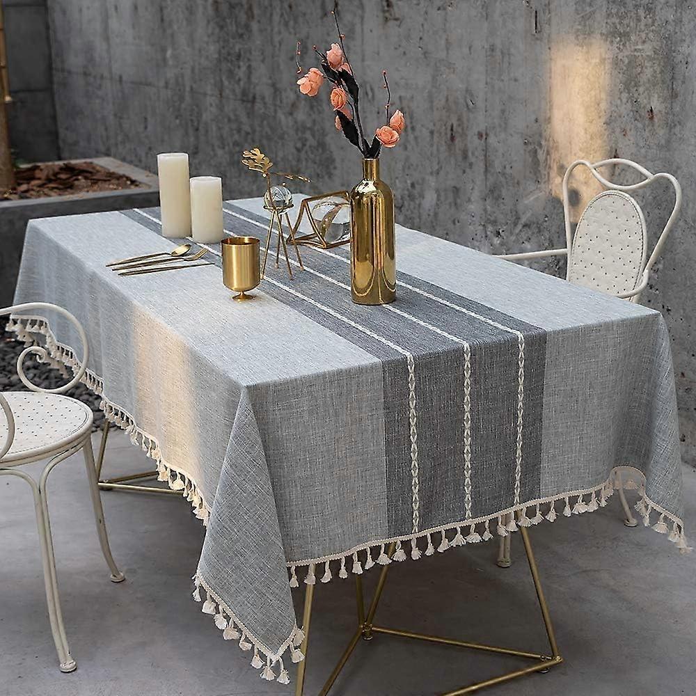 Cotton Washable Tablecloth with Tassel Wrinkle Free Outdoor & Indoor Dining Table Cover (Grey, 55 x 87 Inch)