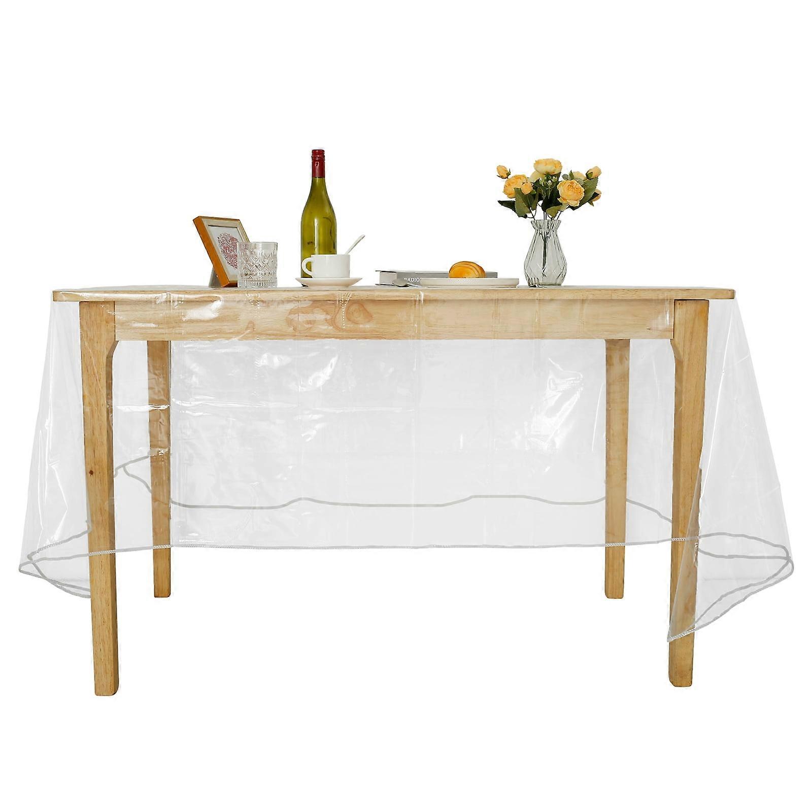 Protoiya Clear Rectangular Fitted Vinyl Tablecloth, Waterproof PVC Table Cover for 60-84 Inch Tables, Indoor Outdoor Use