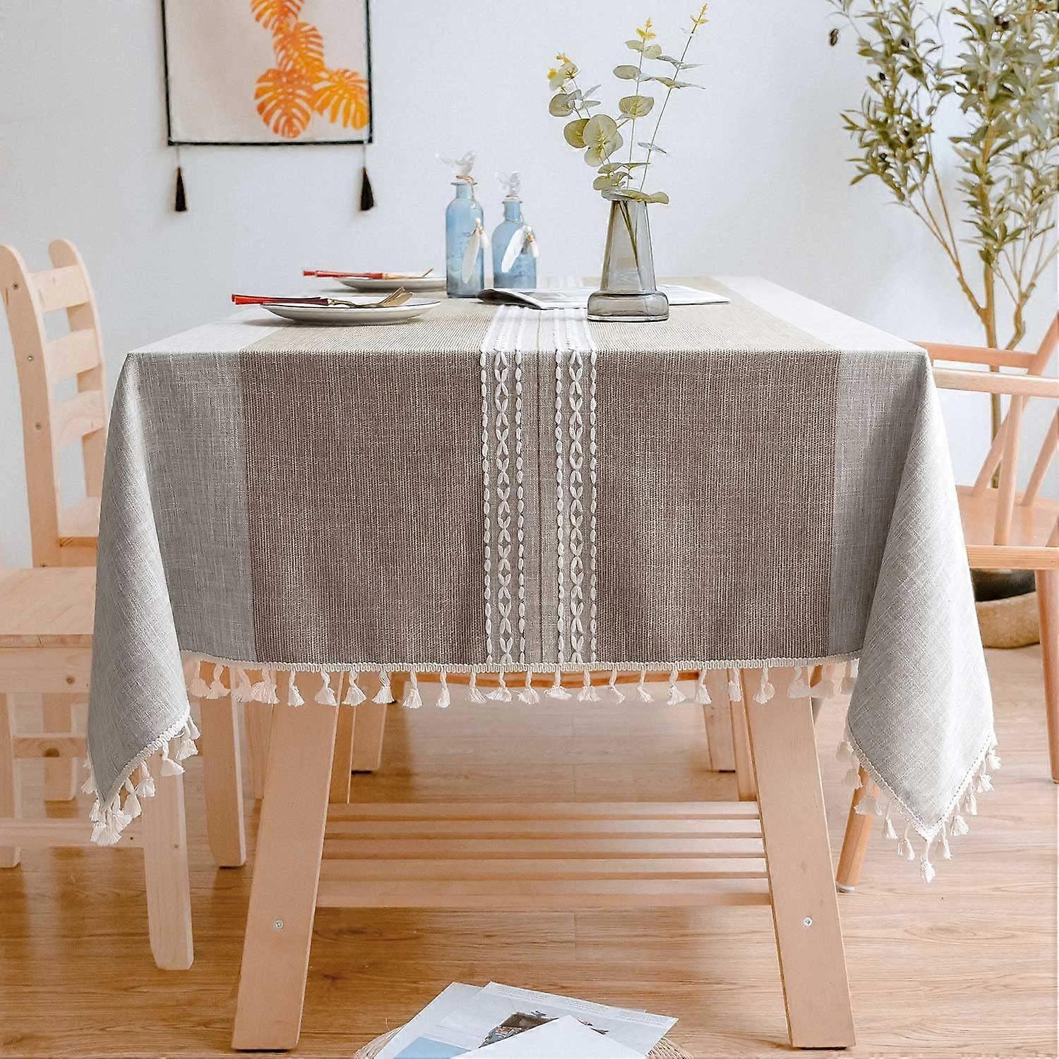Table Cloth Rustic Linen Boho Style,Kitchen Dining Room Double Striped Farmhouse Tablecloths for Rectangle Tables, Washable Wrinkle Resistant Table Co
