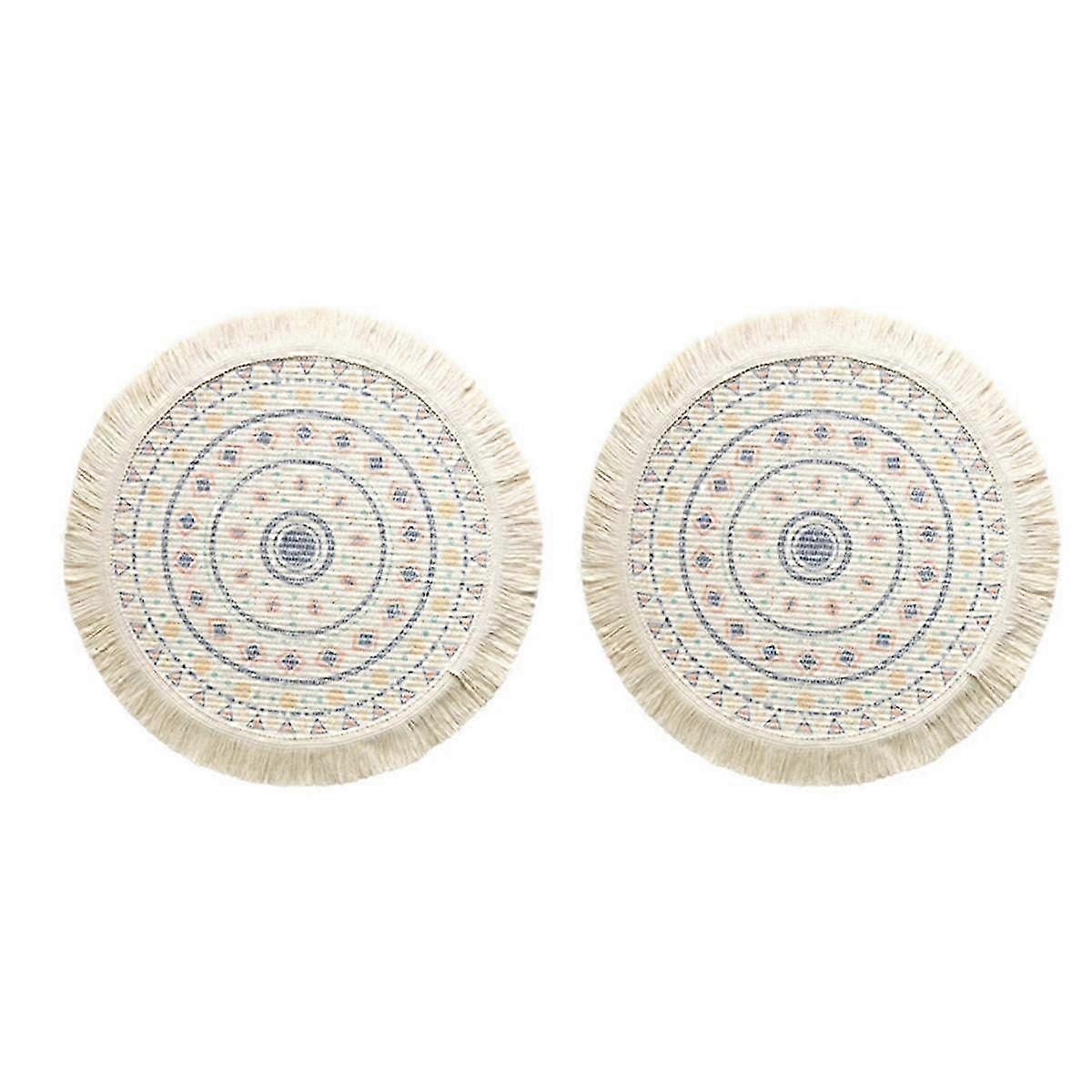 New Bohemian Tassel Design 2Pcs Printed Place Mats for Home Insulation: Circular Shape Dinner Table Props