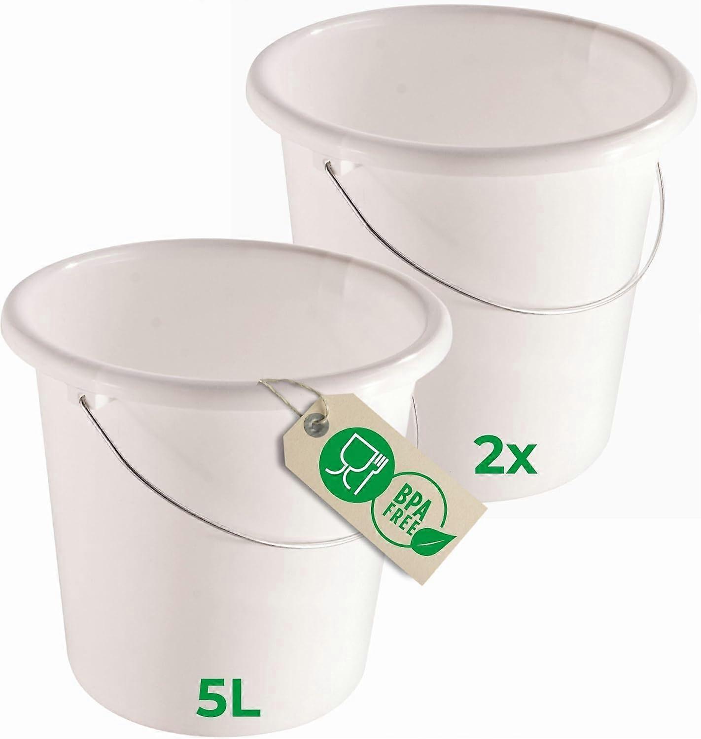 Novaliv 2 Stück Eimer 5L Weiß mit Maßeinteilung - Putzeimer 5 Liter ? 22,5 cm Praktischer Allrounder