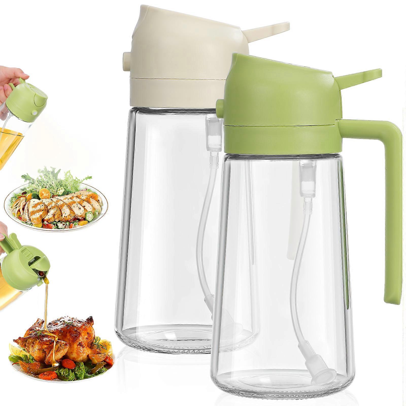 Introducing an innovative and practical tool for culinary enthusiasts and professional chefs alike, our Glass Oil Dispenser Bottle seamlessly combines the functionality of a precision sprayer and a classic pourer. Crafted from glass, this sleek bottle not only adds sophistication to your countertop but also eases your cooking and dressing processes. Features -Color:Assorted Color -Material:Glass - Size: 18.50X8.00X8.00cm/7.27X3.14X3.14in -Versatile dispensing: The oil bottle allows you to apply a fine mist spray for delicate seasoning and even coating, or a controlled pour for dressings and deep-frying. -Wide mouth: With a wide-mouth opening, the oil sprayer simplifies refilling and cleaning tasks, allowing you to effortlessly top up oils and effortlessly wash the interior. -Glass construction: Made from thick glass, this oil dispenser bottle withstands everyday use while maintaining transparency for easy monitoring of contents. -Tight seal: The oil bottle comes with a secure locking cap that messes-free performance, whether stored horizontally in your pantry or vertically on your countertop. -Sophisticated aesthetics: With its sleek and minimalist styling, this glass oil dispenser complements any kitchen decor. Package list: 2 x oil bottles