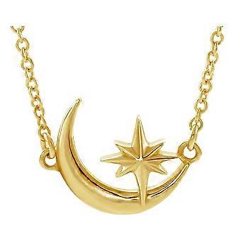 Or jaune 14 carats poli croissant de lune céleste et étoile Collier centre pendentif-collier pour femme