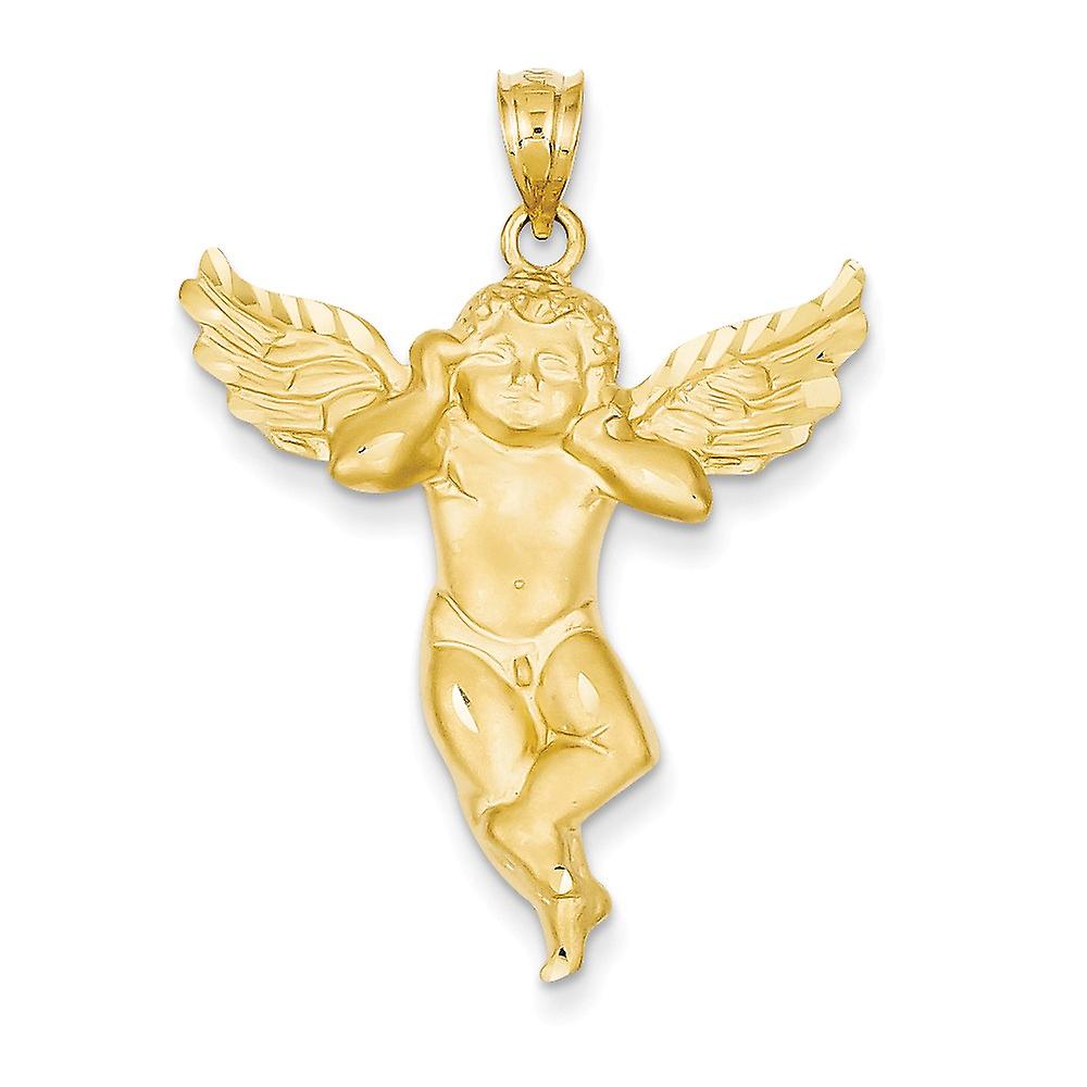 14k Yellow Gold Solid Satin Not engraveable Religious Guardian Angel Pendant Necklace 28x28mm-Pendant for Women