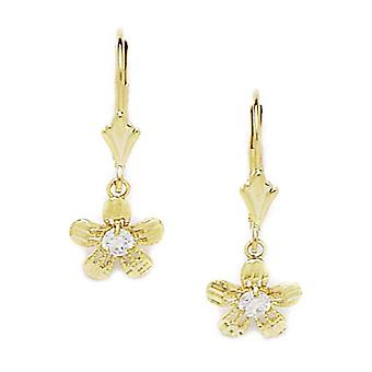 14k Yellow Gold Cubic Zirconia Flower Drop Leverback Earrings 24x9mm Stud Earring for Women