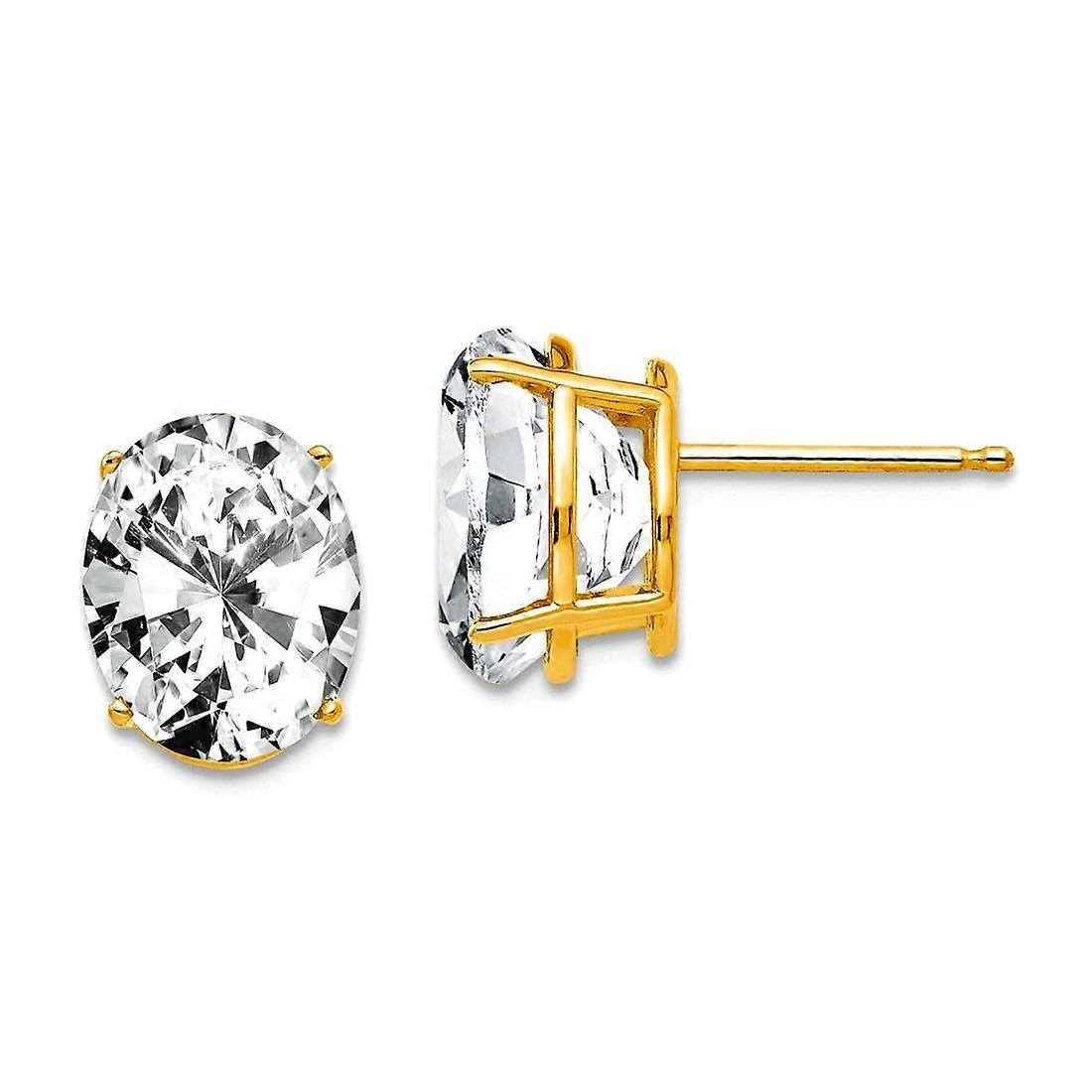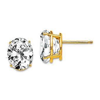 14k Solid Yellow Gold Oval Cubic Zirconia Earrings Stud Earring for Women