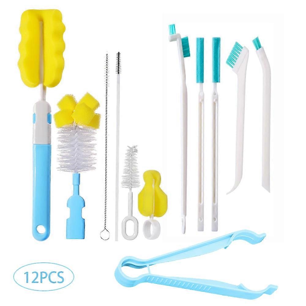 OUSITAI 12Pcs Baby Bottle Brush Set, compatible with all bottle types, includes rotary cleaner, nipple & straw brushes, sponge kit
